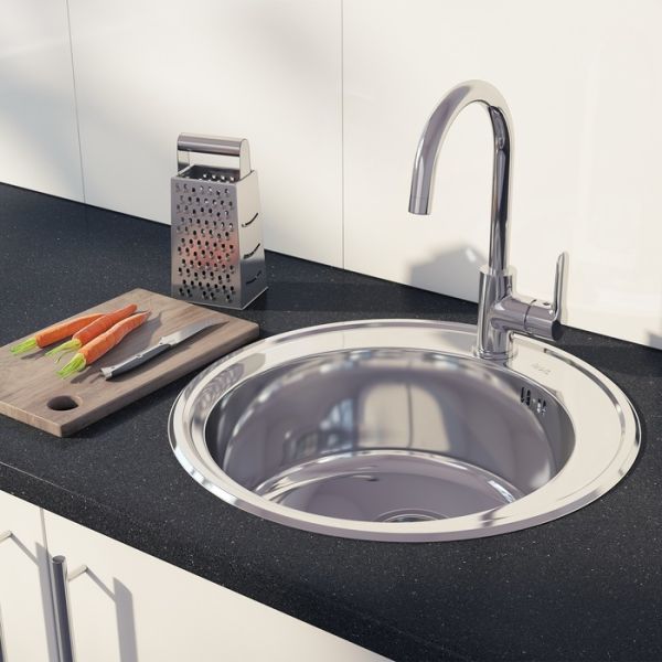 Универсальная круглая стальная мойка Basic с блестящей полированной поверхностью диаметром 51 см и глубиной 18 см.