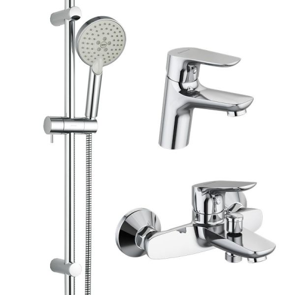 - 3 в 1: набор из двух смесителей и душевого комплекта гармонично дополняют друг друга как функционально, так и эстетически.