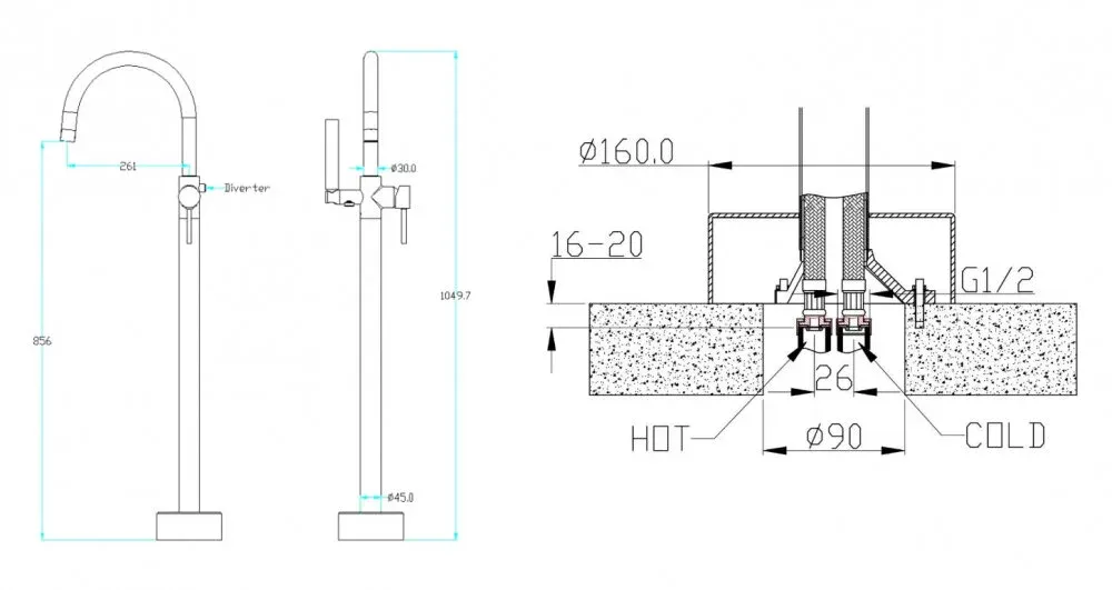 Смеситель Boheme Uno для ванны напольный, Смеситель для ванны Монтаж: напольный Излив: фикси... Подробнее