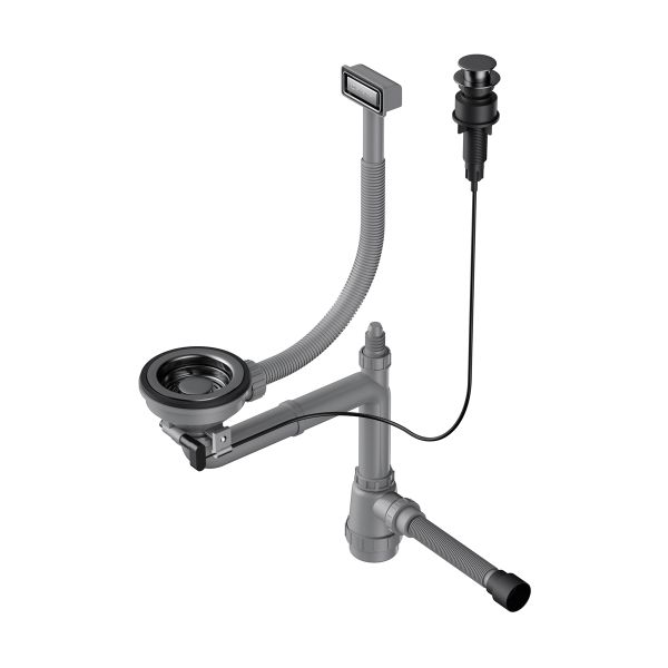 Арматура для одночашевых моек с прямоугольным переливом, декоративной решеткой и клапаном-автомат. Подходит для моек из серий TAKI, AKISAME, OMI, TADZAVA И KATA.