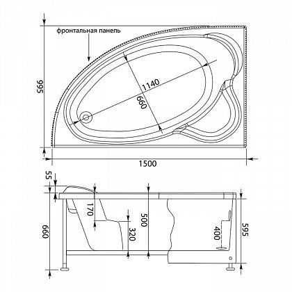 Изогнутая асимметричная левая фронтальная панель из акрила. Устанавливается спереди левосторонней ванны Mayorca и позволяет придать ее конструкции целостный и эстетичный вид, скрывая сантехнические сливы, а также мотор и подводку к форсункам у ванны с системой гидромассажа. Панель для ванной становится защитным экраном, который служит профилактикой скопления загрязнений под ложей ванны, сохраняя экологическую чистоту помещения.