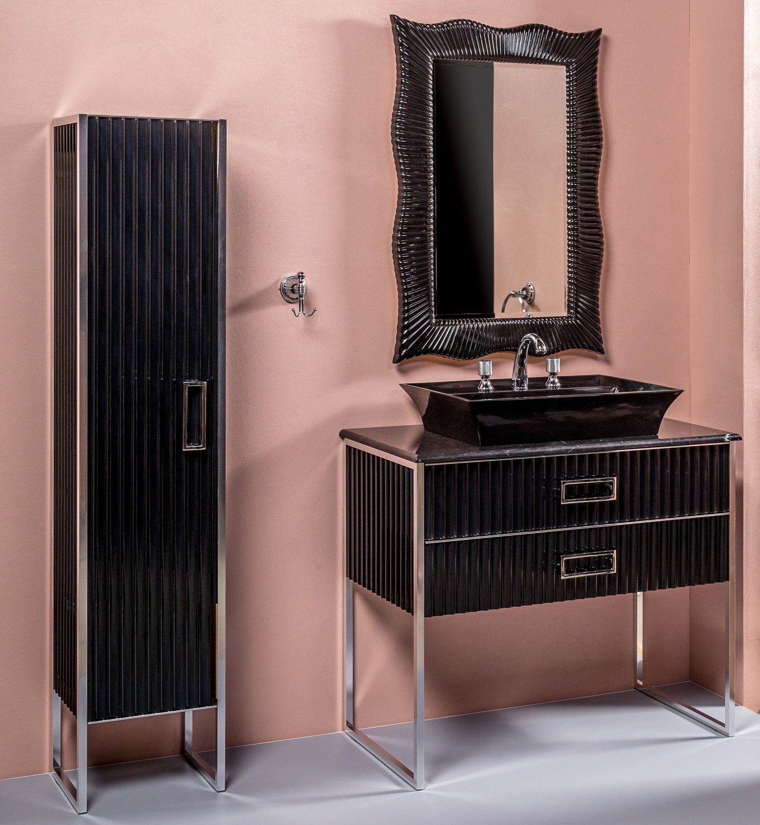 Шкаф-пенал Armadi Art Monaco L роскошно подойдет как для просторной ванной комнаты, так и для небольшого помещения. Напольный способ установки производится непосредственно на пол, при этом конструкция максимально устойчива при серьезных физических нагрузках.В производстве используют только качественные влагостойкие материалы (алюминий), в составе которых полностью отсутствуют опасные вещества. Серия Monaco отличается превосходным дизайном с соблюдением всех ключевых элементов стиля ретро. Основным цветом, в котором выполнен шкаф-пенал Armadi Art Monaco является черный, гармонирующий с большинством интерьерных решений. Шкаф-пенал предусматривает удобную и вместительную систему хранения, состоящую из дверей. Качественные доводчики позволяют обеспечить мягкое и тихое закрывание. Ключевые габариты изделия: ширина 35 см, глубина 30 см, высота 170 см.Страной бренда Armadi Art является Италия, все товары производятся с выполнением соответствующих стандартов качества, что позволяет быть полностью уверенными в долговечности и надежности. Шкаф-пенал Armadi Art Monaco L поможет сделать уютным любой интерьер и создать идеальную ванную комнату.