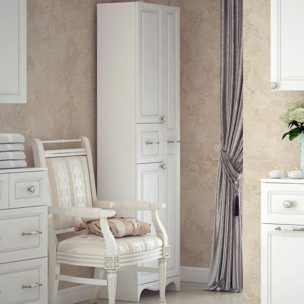 Шкаф-пенал Corozo Классика 50 не только великолепное украшение для ванной комнаты, но и замечательное функциональное решение любого санузла. Напольный способ установки производится непосредственно на пол, при этом конструкция максимально устойчива при серьезных физических нагрузках.Компания Corozo использует при производстве высококачественные водоотталкивающие материалы (МДФ), соответствующие всем необходимым требованиям безопасности. Коллекция Классика выполнена в эксклюзивном дизайнерском решении в лучших традициях стиля ретро. Белый, основной цвет исполнения Corozo Классика, безупречно впишется в любой дизайн проект. Шкаф-пенал предусматривает удобную и вместительную систему хранения, состоящую из ящиков. Качественные доводчики позволяют обеспечить мягкое и тихое закрывание. Важные размеры товара: ширина 50 см, глубина 29.1 см, высота 180 см.Россия родина бренда Corozo, вся продукция производится со строгим соблюдением всех стандартов, благодаря чему можно быть абсолютно уверенным в надежности и высоком качестве. Шкаф-пенал Corozo Классика 50 создаст уют и комфорт в любом дизайнерском решении, и ванная комната обретет неповторимый элемент интерьера.