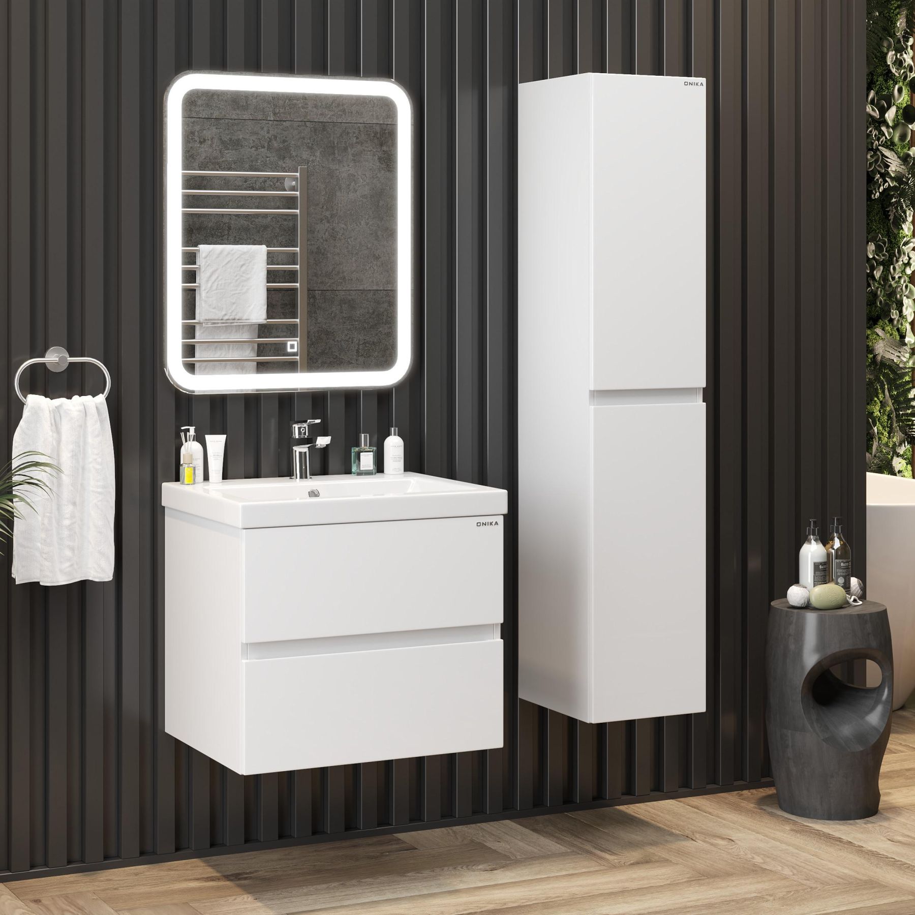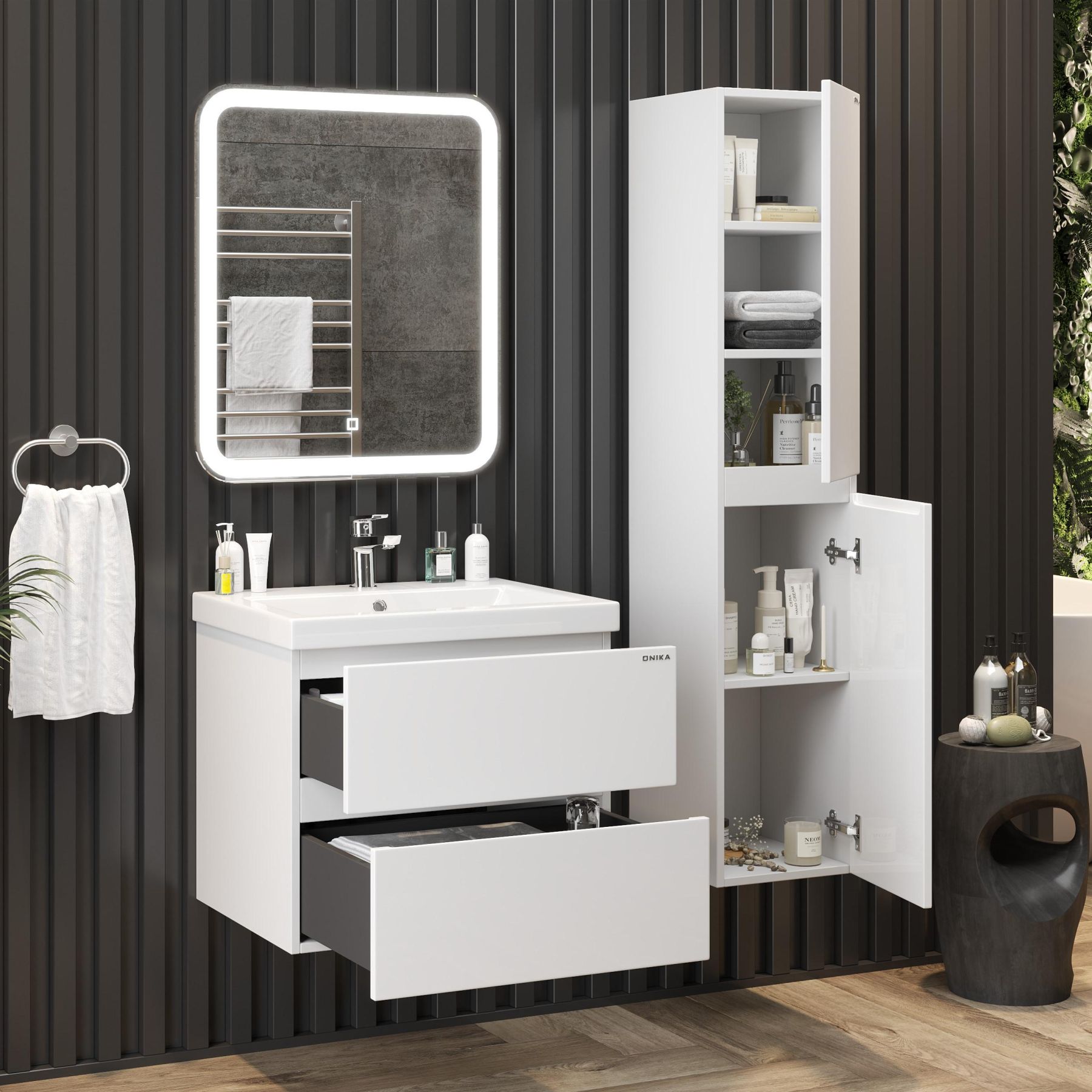 Подвесной шкаф пенал для ванной комнаты Onika Эвада 30 отличается чёткой геометрией форм и создан для тех, кто ценит современный лаконичный дизайн и безупречное исполнение.