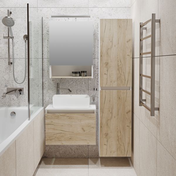 Шкаф пенал для ванной комнаты RUNO Бари (подвесной) - безупречное сочетание модных тенденций с кл... Подробнее