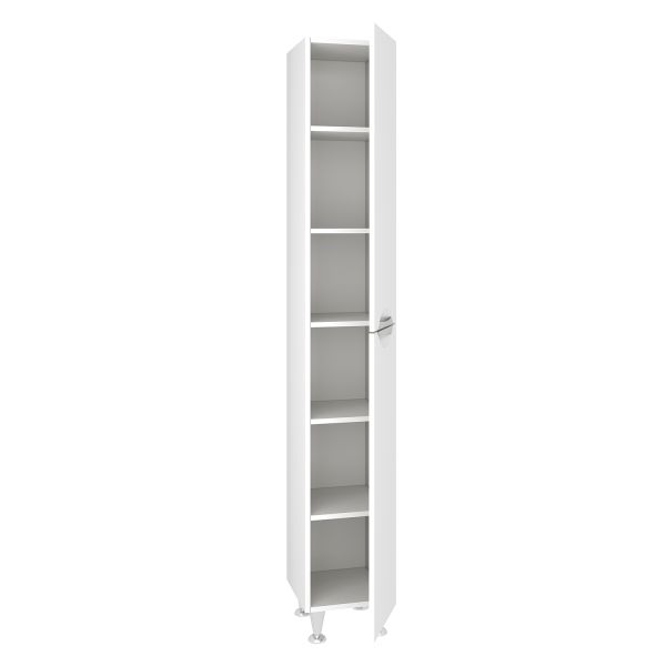 Шкаф-колонна напольный универсальный с двумя распашными дверками. В нижнем и верхнем отделениях - по две внутренние полки. Комплектация: петли с доводчиком, ручки врезные - 2шт, ножки хром - 2шт, ножки пластик - 2шт.