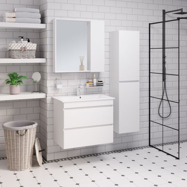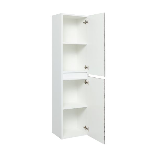 Шкаф-колонна подвесной с двумя отделениями и распашными дверками. В каждом отделении по одной встроенной полке. Петли со встроенным доводчиком, подвес -2шт. Шкаф универсальный (для смены ориентации товар поворачивается на 180 градусов). Корпус изделий изготовлен из белого ЛДСП, а фасады облицованы белой пленкой ПВХ.