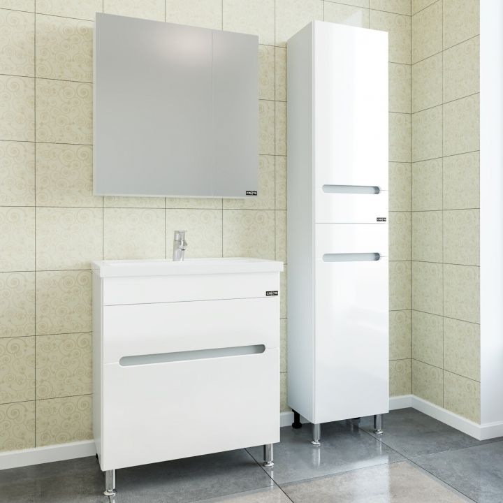 Шкаф-пенал СанТа отличное решение для создания комфортной атмосферы в любой ванной комнате. Напольный способ установки производится непосредственно на пол, при этом конструкция максимально устойчива при серьезных физических нагрузках. В производстве используют только качественные влагостойкие материалы (ВЛДСП), в составе которых полностью отсутствуют опасные вещества. Серия Вегас отличается превосходным дизайном с соблюдением всех существенных элементов современного стиля. Основным цветом, в котором выполнен шкаф-пенал СанТа является белый, безупречно впишется в любой дизайн проект. Шкаф-пенал предусматривает удобную и вместительную систему хранения, состоящую из дверей.Страной бренда СанТа является Россия, все товары производятся с выполнением соответствующих стандартов качества, что позволяет быть полностью уверенными в долговечности и надежности. Шкаф-пенал СанТа поможет сделать уютным любой интерьер и создать идеальную ванную комнату.