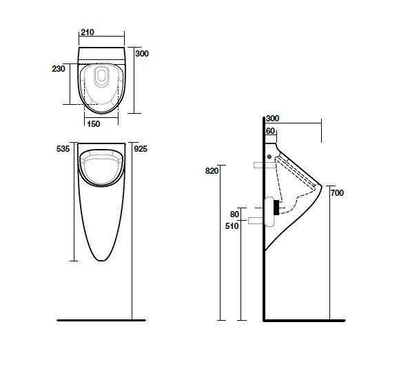 Писсуар Kerasan Aquatech 3735 ПодвеснойKerasan Aquatech 373501 Писсуар подвесной, размер 210х300х535 мм. Внутренний налив. Сифон и крепежи в комплекте. Цв. белый.