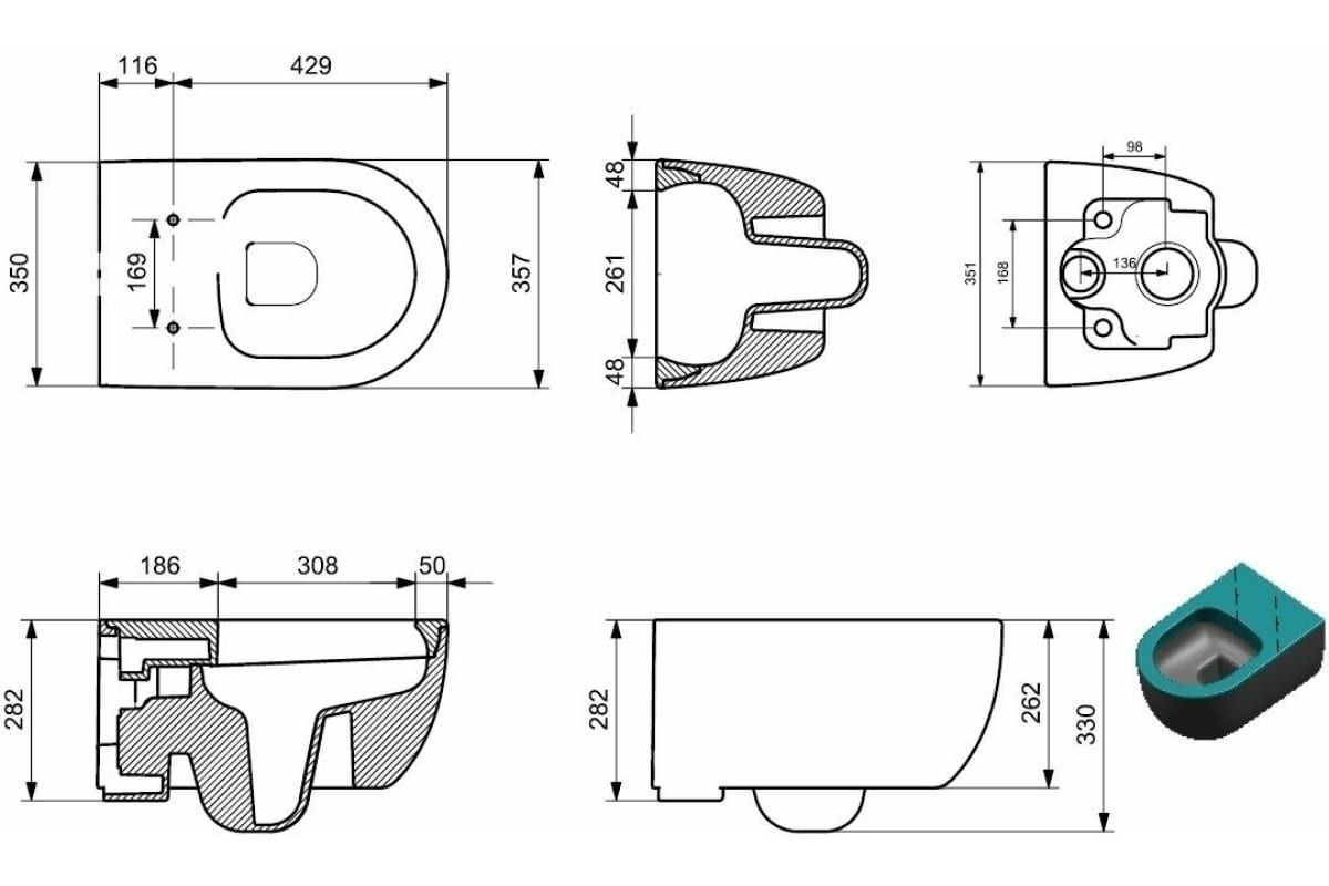• Укороченный унитаз: