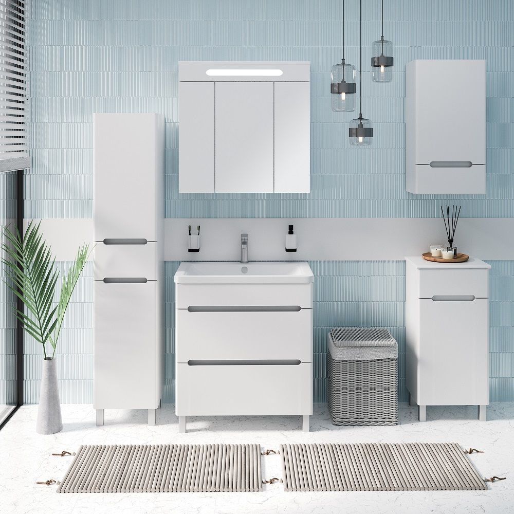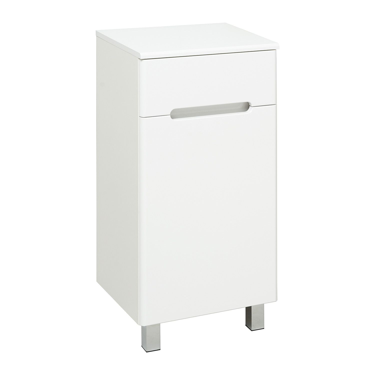 Тумба в ванную (полупенал) с одним выдвижным ящиком и распашной дверкой. В нижнем отделении - одна внутренняя полка. Петли со встроенным доводчиком, ящик на шариковых направляющих полного выдвижения. Выпускается только в правом исполнении.