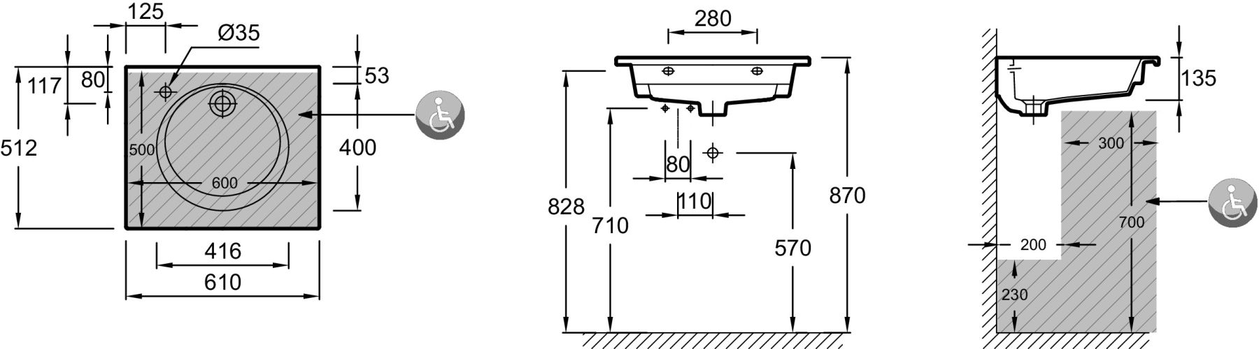 • Отверстия под смеситель:
