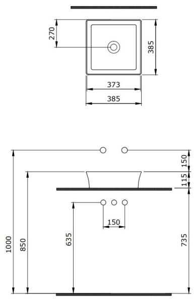Накладная раковина из санфарфора Berges Ego SL размером 38х38х11,5 см.Квадратной формы, без отверстия под смеситель, глянцевая белая.
