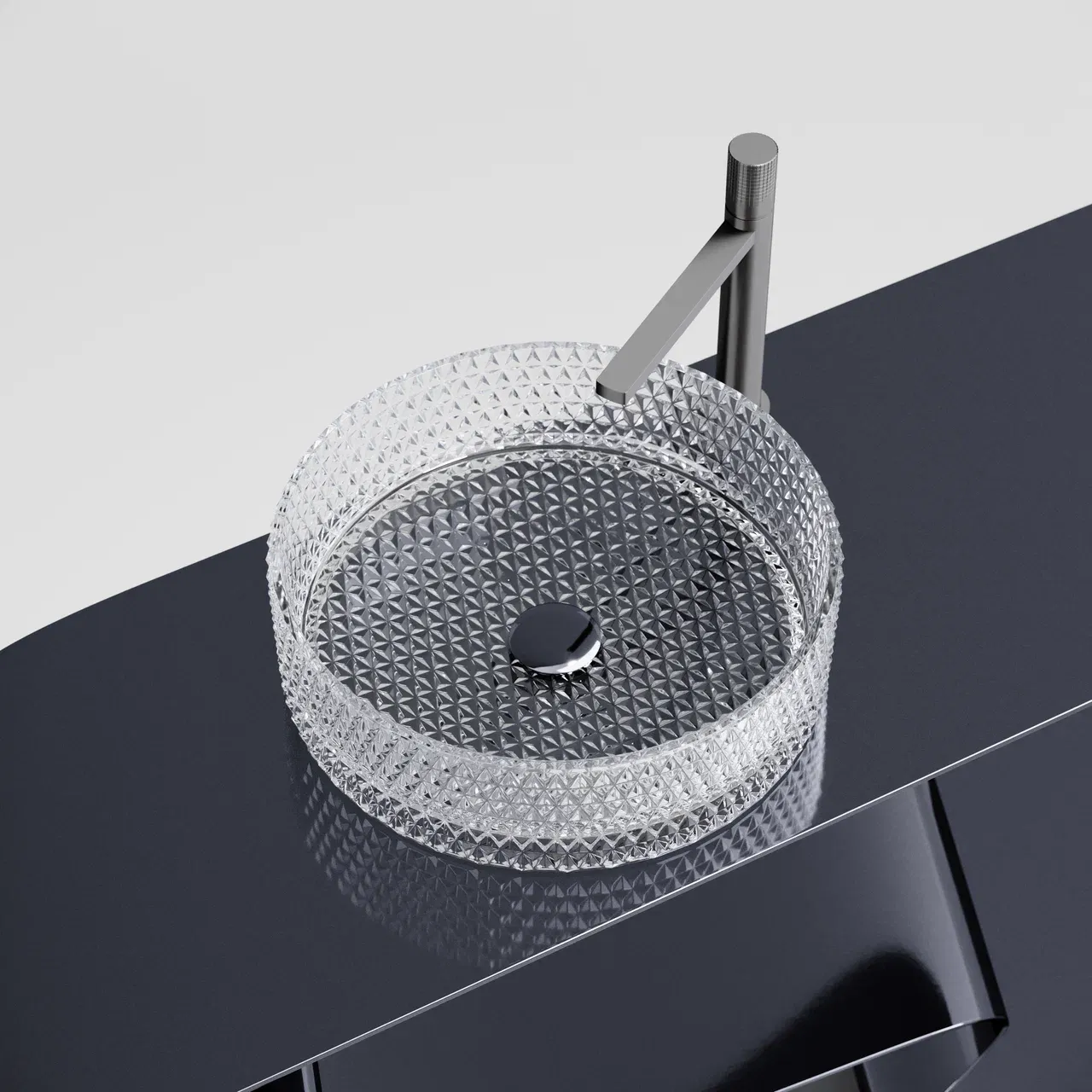Умывальник чаша накладная круглая (прозрачная) Cristal 360*360*112мм