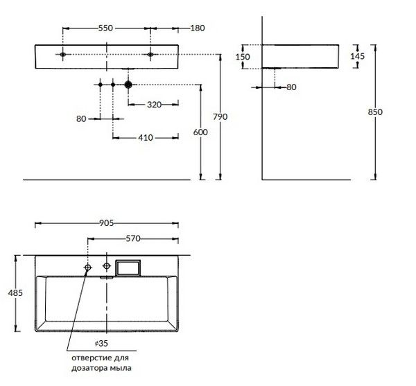• Отверстия под смеситель: