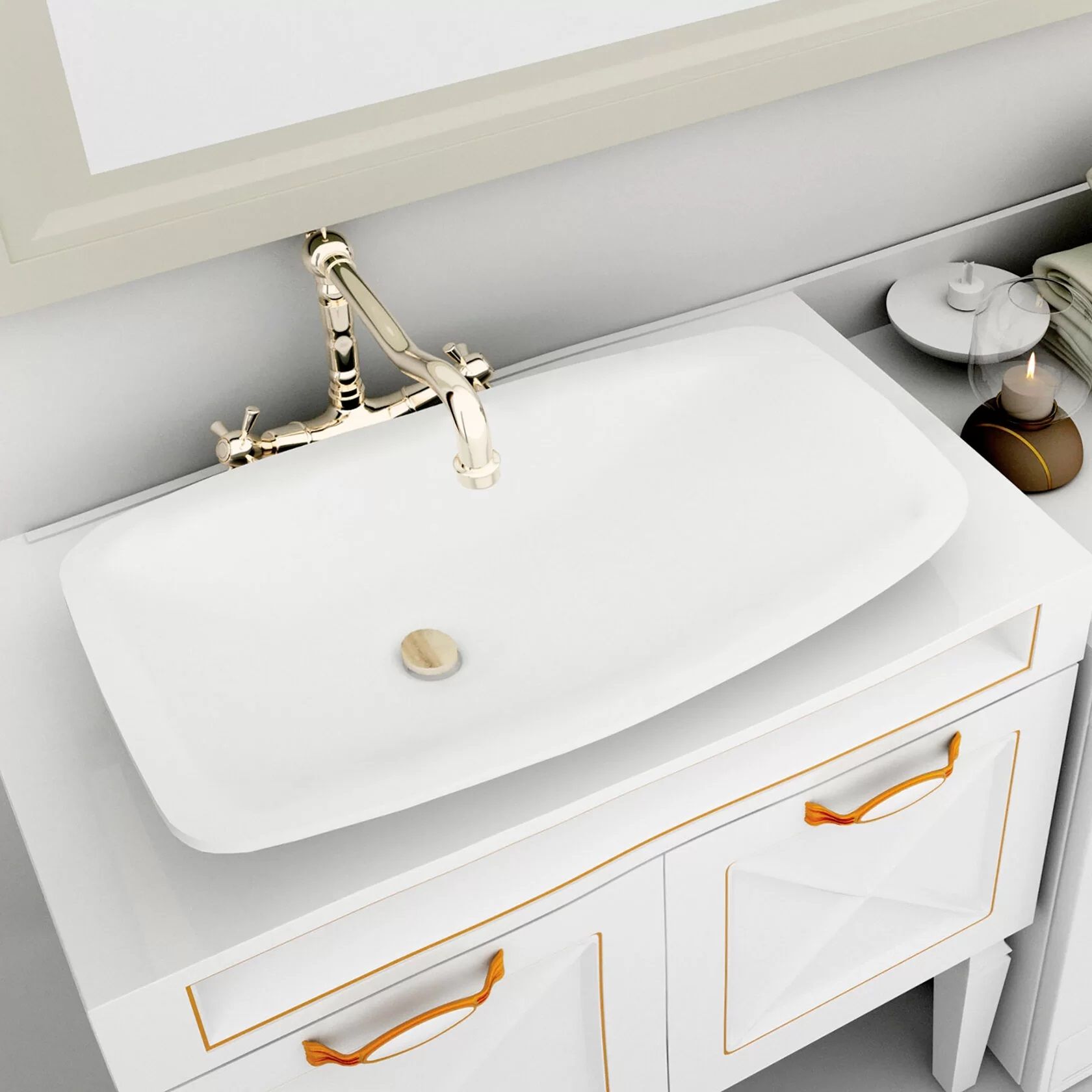 Раковина из искусственного камня для ванной комнаты. Легкая и «воздушная». Ассиметричной формы, чем-то напоминающей крыло, со смещенным от центра сливным отверстием. Края изящно закруглены. Отлично смотрится в дизайне современного интерьера. Устанавливается на поверхность столешницы или мебели сверху накладным способом. Tuscany имеет матовую, бархатистую поверхность. Полимерный материал принимает температуру окружающей среды, поэтому в жилом пространстве данная модель раковины всегда будет приятной на ощупь. Уход за раковиной из искусственного камня прост: в большинстве случаев достаточно протереть поверхность влажной губкой с чистящим средством. Материал не впитывает влагу, не порист, непроницаем для плесени, бактерий и грибков.