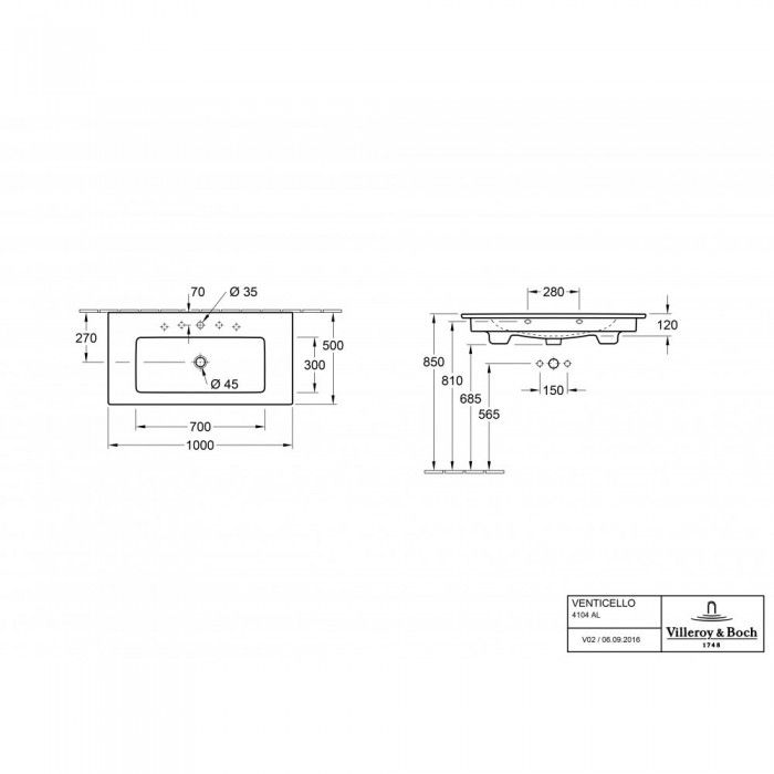 Раковина Villeroy Boch Venticello 50 x 100 см 4104AL01 купить