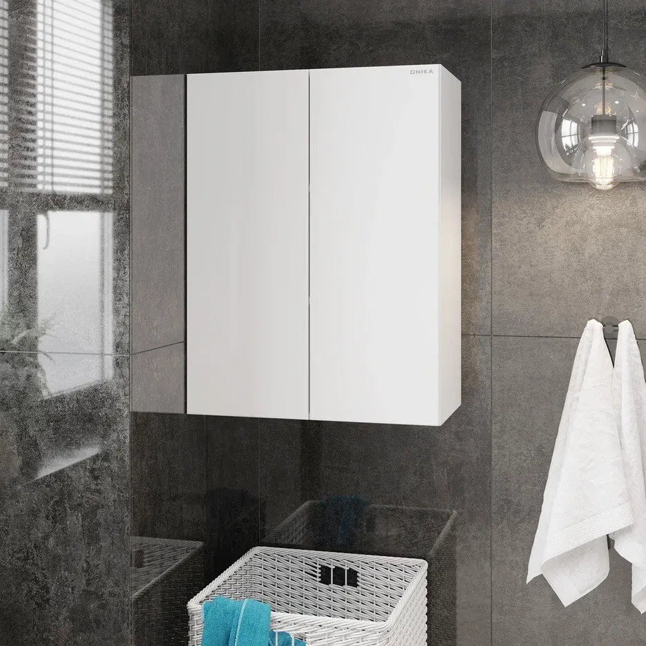 Навесной шкаф для ванной комнаты Onika Маркус 60, благодаря лаконичной прямоугольной форме и универсальному белому цвету, подойдет к любому интерьеру ванной комнаты и не займет много места.