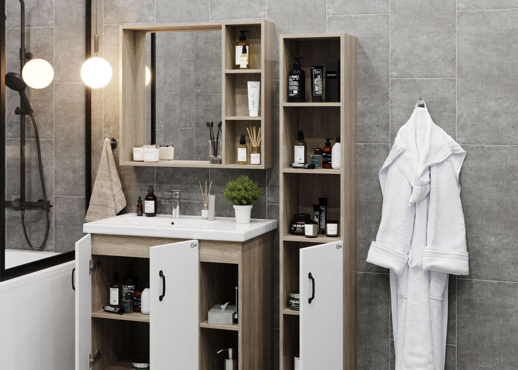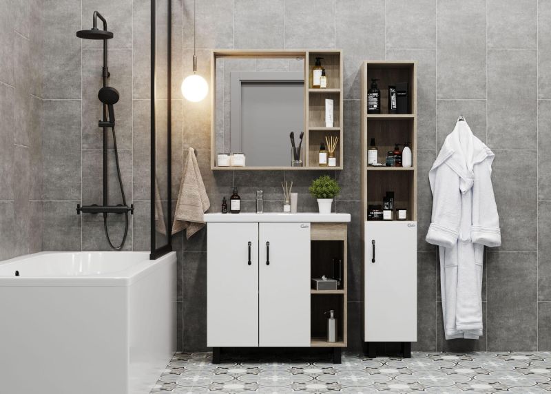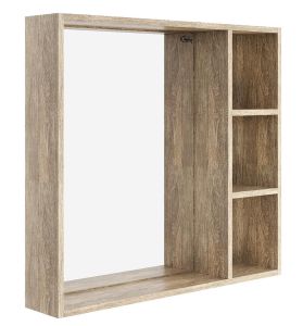 Зеркальный шкаф Onika ТИМБЕР 80 отражает современные тенденции в дизайне мебели для ванных комнат: минимализм с простыми и понятными формами, цвета дуба с роскошной текстурой, отсутствие лишних деталей.