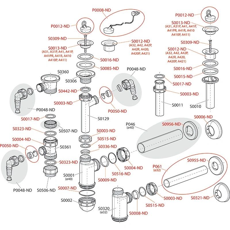 - Подключение к стоковой трубе Ø40 мм