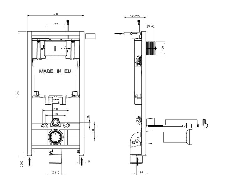 Система инсталляции Jacob Delafon E29025-NFСистема инсталляции 80 на 3/6 литра, в сборе, метал крепления,ширина 500 мм