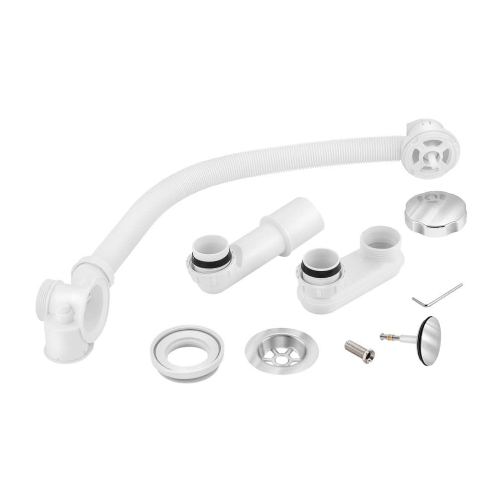 Полуавтоматический слив-переливом 60 см. Металлическая хромированная поворотная ручка предотвращает "скручивание" и увеличивает срок его службы.Подвижные элементы гидрозатвора позволяют при установке, задать любой угол поворота сливного патрубка.Трехстороннее уплотнение отверстия слива устраняет попадание воды на незащищенные участки материала ванны. Цвет сливной пробки и крышки перелива хром. Слив-перелив с универсальным отводом: 40/50 мм.