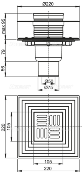 Сливной трап AlcaPlast 105 ? 105/50/75мм решетка - хром APV4344