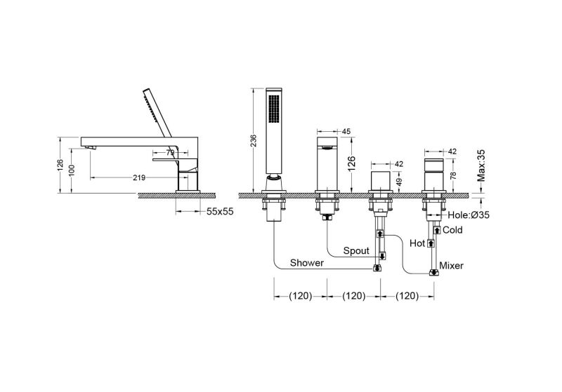Смеситель Aquatek Либра AQ1648MB на борт ванны черныйВысота излива (см): 10