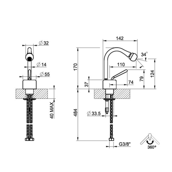• Высота смесителя: