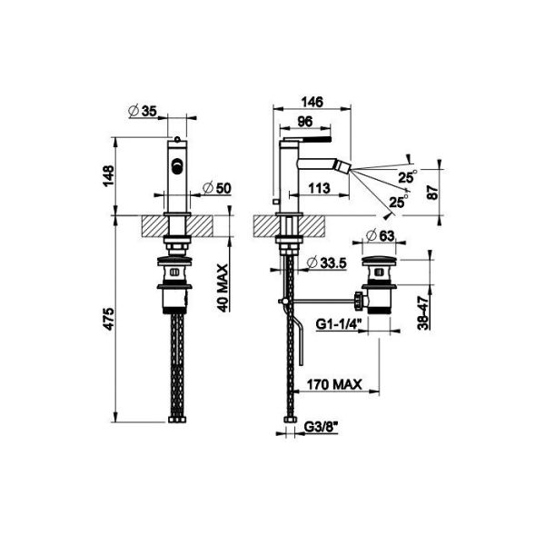 • Высота смесителя: