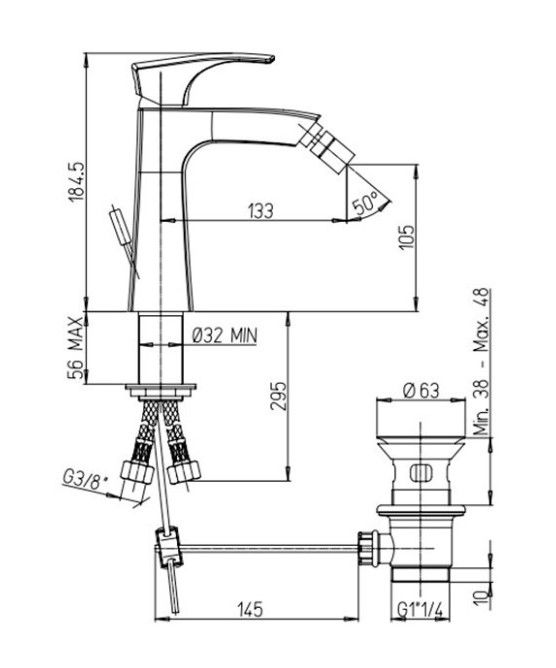 • Аэратор Neoperl под наклоном (струя отводится дальше от края биде) наполняет воду кислородом, увеличивает напор воды, вследствие чего становится возможной существенная экономия воды. Сеточка легко очищается пальцем.