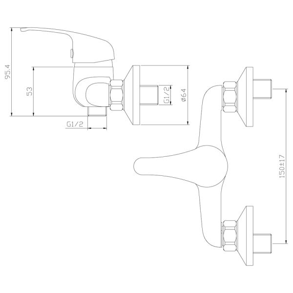 Смеситель для душа Rossinka Y35-41, однорычажный. Аксессуары в комплекте (шланг 1,5 м, настенное крепление, функциональная лейка с функцией легкой очистки). Присоединительная группа (эксцентрики с отражателями) для вертикального крепления.