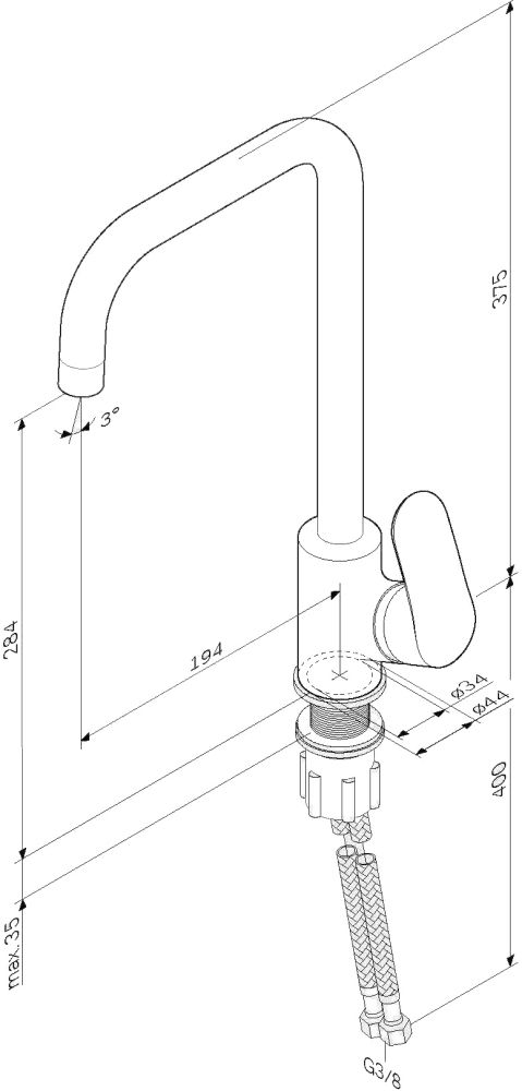 - Высота смесителя:37.5