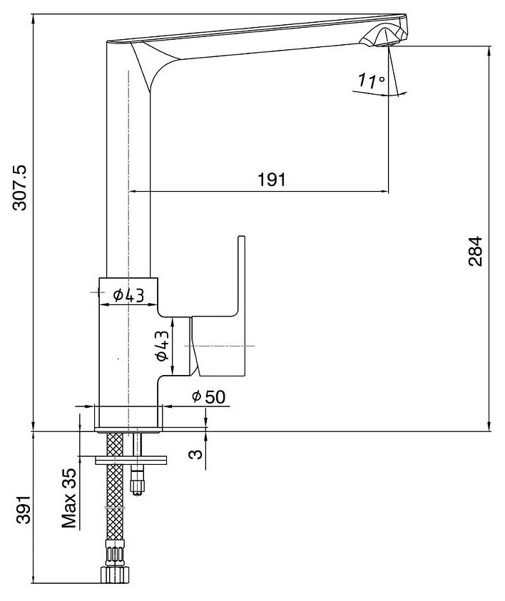 • Высота смесителя: