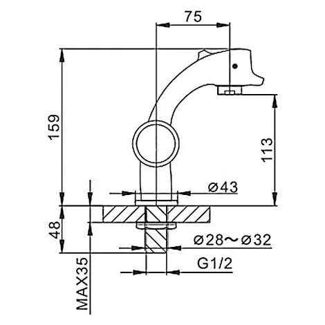 - Длина излива, см:7.5