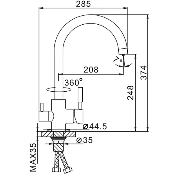 • Высота смесителя: