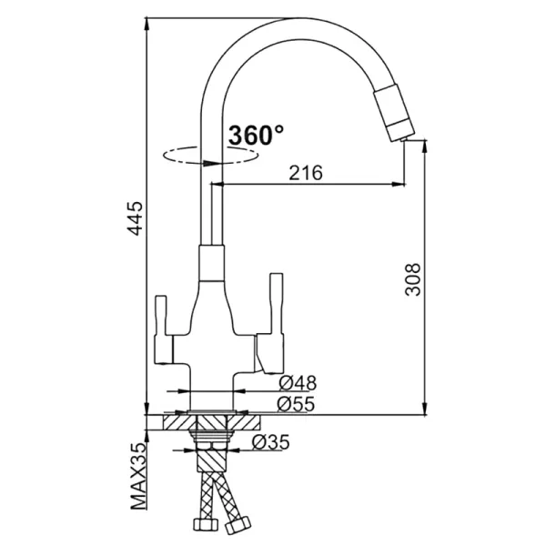- Высота смесителя:44.5