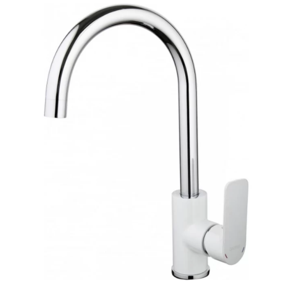 Cмеситель для кухонной мойки Gappo Noar G4048 - изготовлен из латуни. Имеет высокий излив, однорычажное управление, испанский керамический картридж Sedal 35 мм. Цвет - хром / белый.
