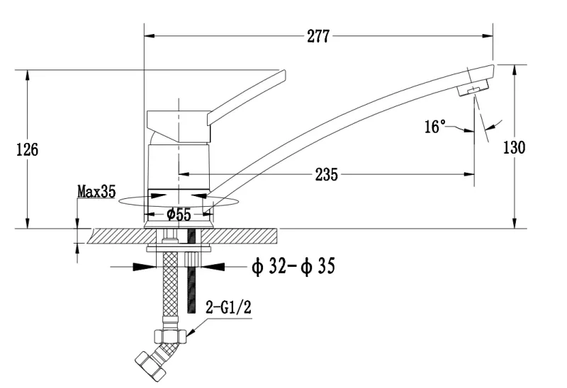 Смеситель для кухни GranFest 1724 графит Подробнее