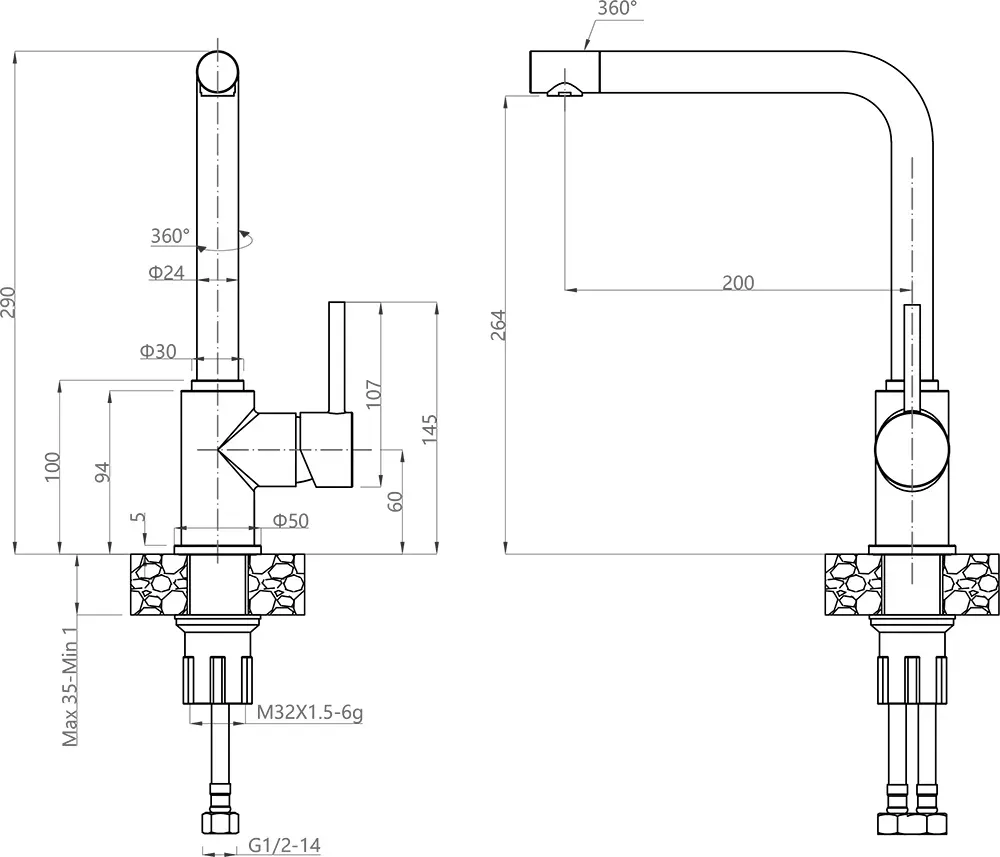 - Высота смесителя:29