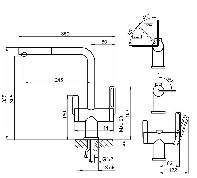 Смеситель для кухни Granula 8170, АЛЮМИНИУМ Алюминиум Подробнее