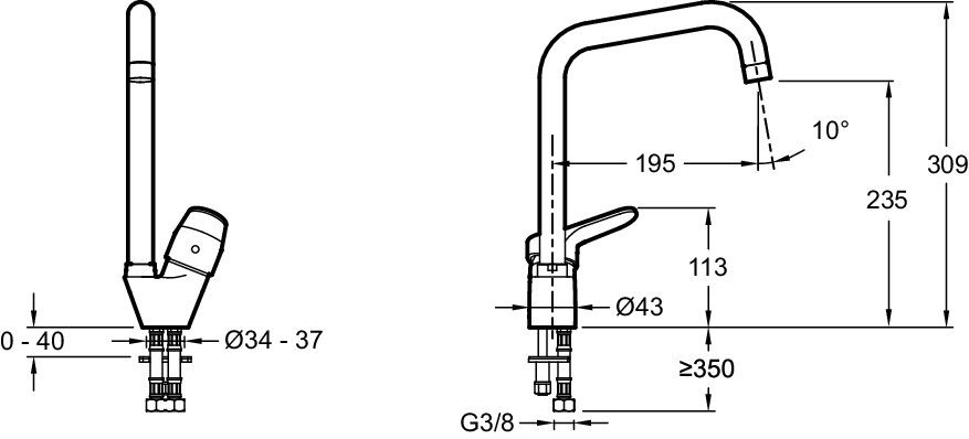 • Высота смесителя: