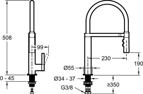 • Выдвижной излив: