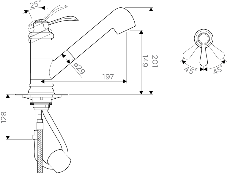 • Гибкий излив: