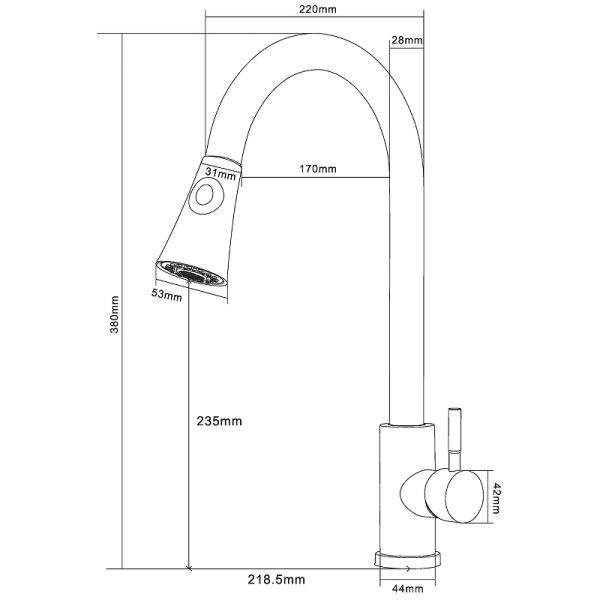 - Длина излива, см:21.8