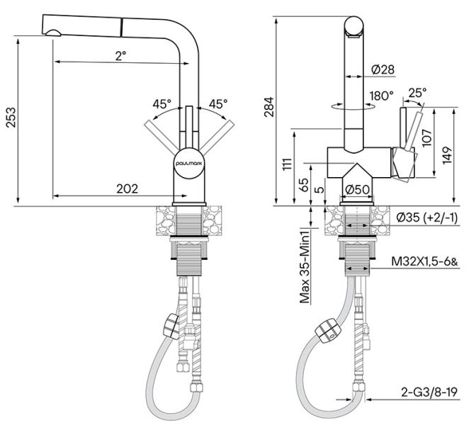 Смеситель для кухни с выдвижным шлангом, артикул Do214418-401Изготовлен из нержавеющей стали AISI 304. Нержавеющая сталь AISI 304 легирована никелем, марганцем, медью и хромом, что обеспечивает ей повышенную прочность и устойчивость в коррозионных средах, такая сталь не подвержена деформациям.Вытяжной шланг