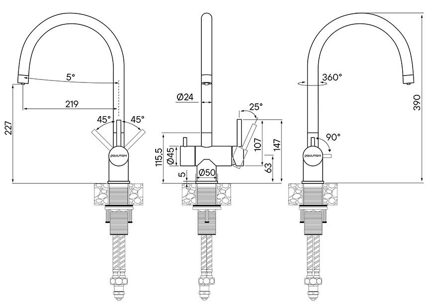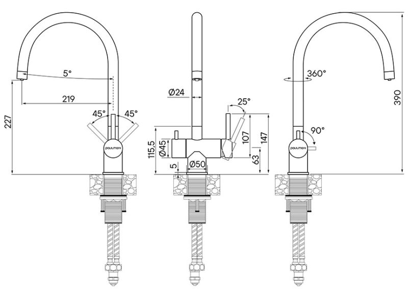 Смеситель для кухни Paulmark Heller He213218-401 антрацит купить