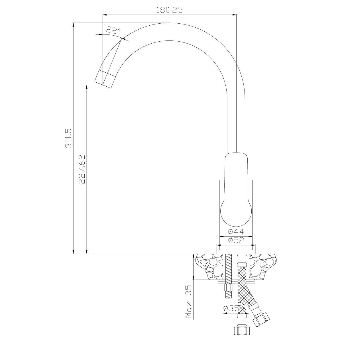 - Высота смесителя:31.2