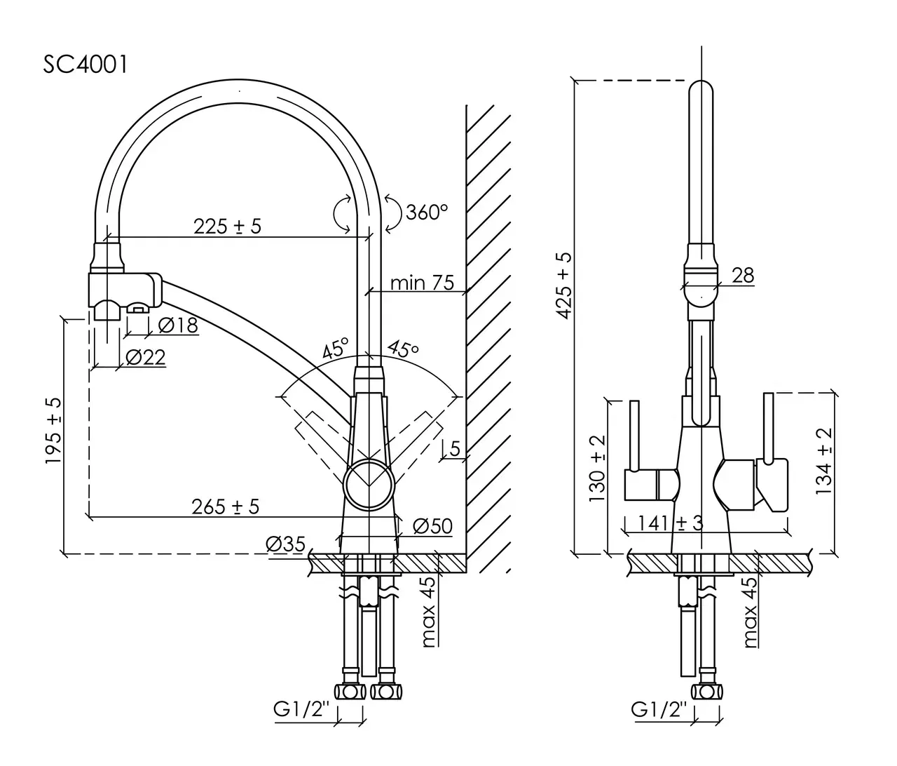 - Длина излива, см:22.5