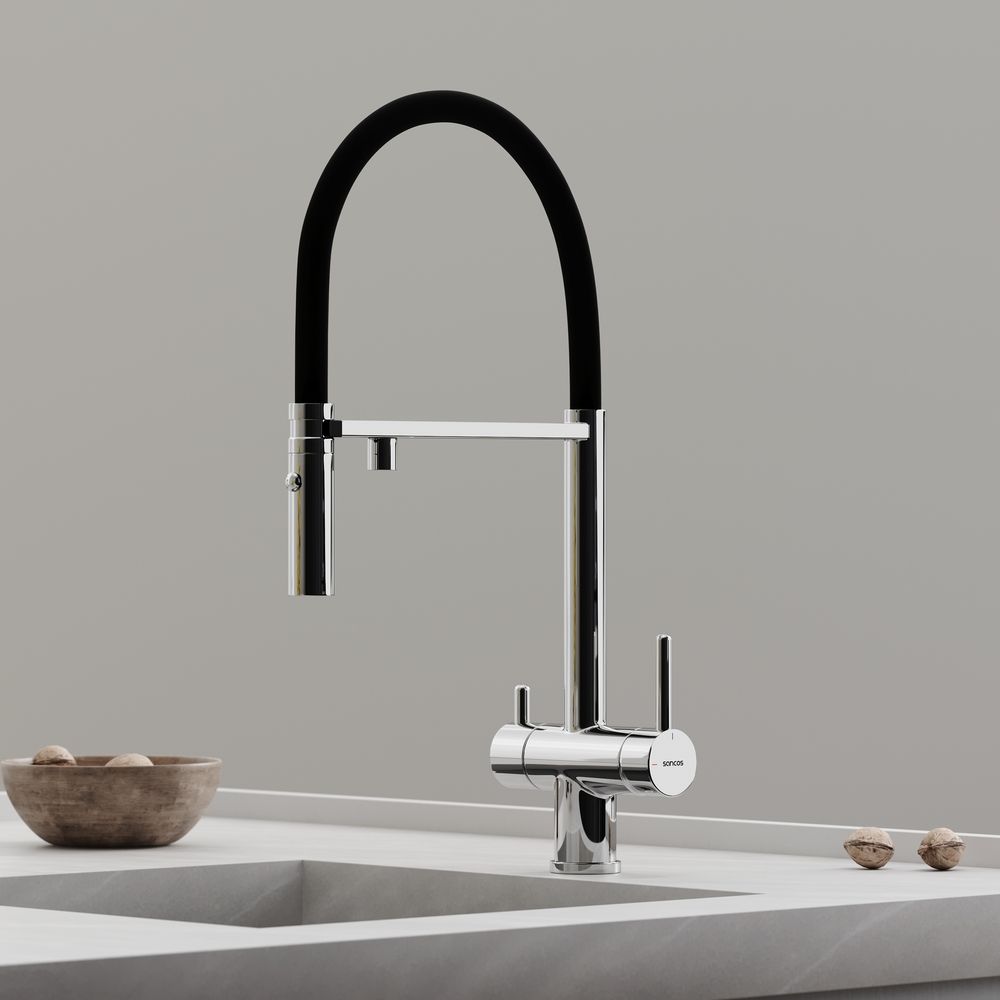 Смеситель для кухни SANCOS Imola с гибким изливом и возможностью подключения фильтра для воды, цвет хром, арт. SC4010CHФункция "Холодный старт" - при включении смесителя активируется холодной поток, для экономии горячей водыАэратор, гибкая подводка, ключ и крепления для монтажа